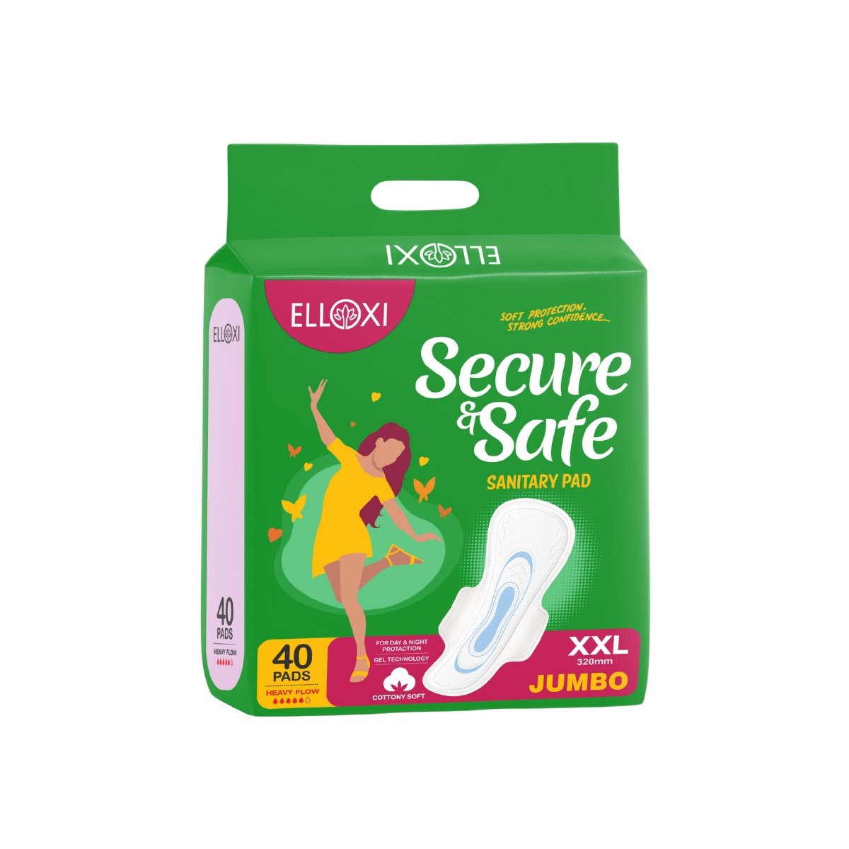 ELLOXI Secure & Safe Sanitary Pads XXL Jumbo | 320 mm | Heavy Flow Protection | Day & Night Use | Gel Technology | Cottony Soft | 40 Pads Pack
